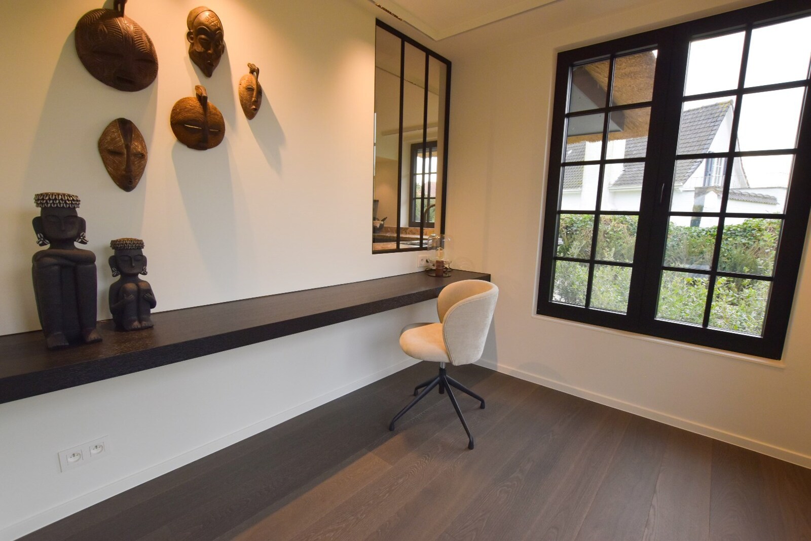 Cuisine entièrement équipée, buanderie séparée et espace bureau.