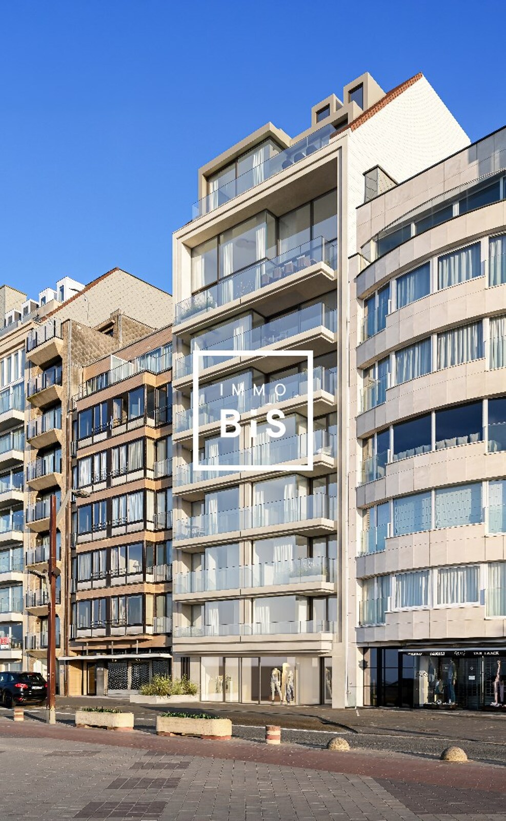 Een prestigieuze nieuwbouwresidentie op een absolute toplocatie op de Zeedijk-Het Zoute, op een steenworp van het Albertplein. Hier geniet u dagelijks van weidse zichten over zee, in een architecturale parel ontworpen door EL Architects. De stijlvolle gevel en royale glaspartijen benadrukken het open karakter van het gebouw, terwijl de brede gevels van de grotere appartementen, tot meer dan 10 meter, zorgen voor een ongeëvenaard gevoel van ruimte en licht. Alle appartementen beschikken over terrassen met frontaal zeezicht, naadloos verbonden met de leefruimtes, en zuidgerichte terrassen aan de achterzijde.