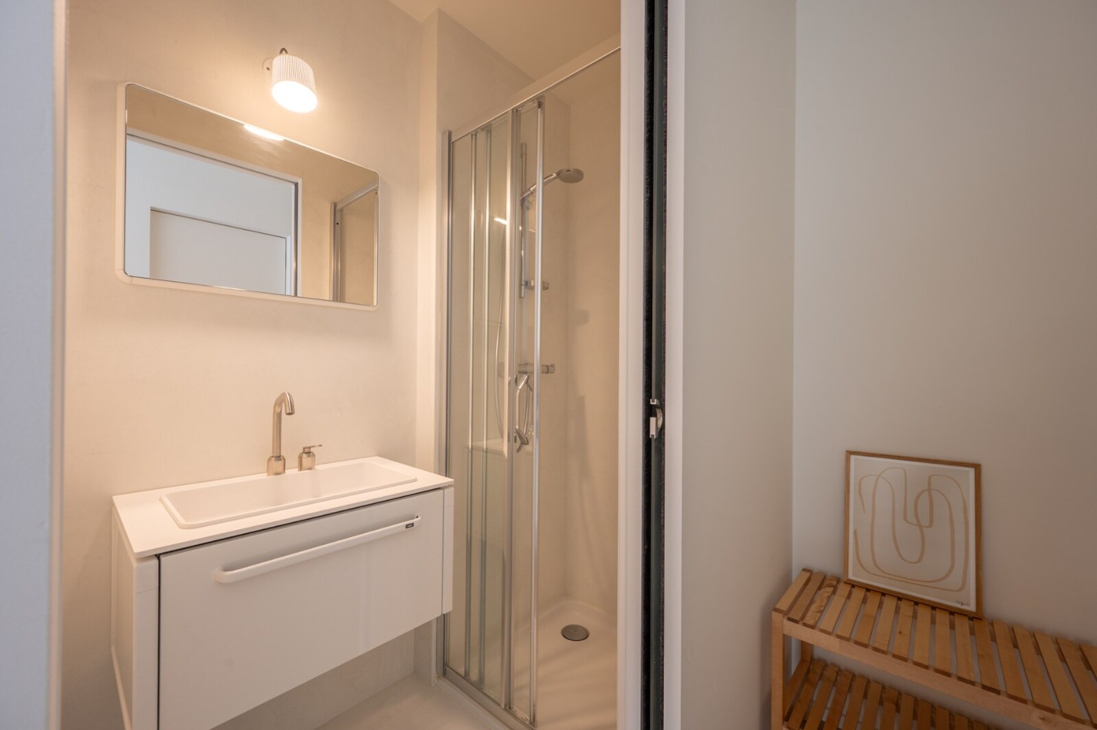 Hoofdslaapkamer met ensuite badkamer. Tweede slaapkamer met ensuite douchekamer, beide slaapkamers hebben toegang tot het achterterras. Bureauruimte/derde extra slaapkamer geschikt voor stapelbedden. Praktische berging.