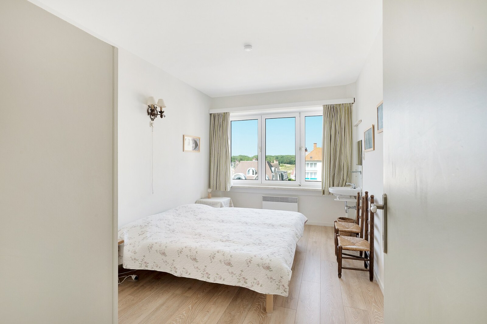 Op slechts 100 meter van het strand, in het hart van Duinbergen, biedt dit hoekappartement op de 4e verdieping van een verzorgde residentie 137 m² woonoppervlak, vijf slaapkamers, veel natuurlijk licht dankzij de zuidwestelijk georiënteerde raampartijen en een vrij uitzicht op de omliggende villa’s.
