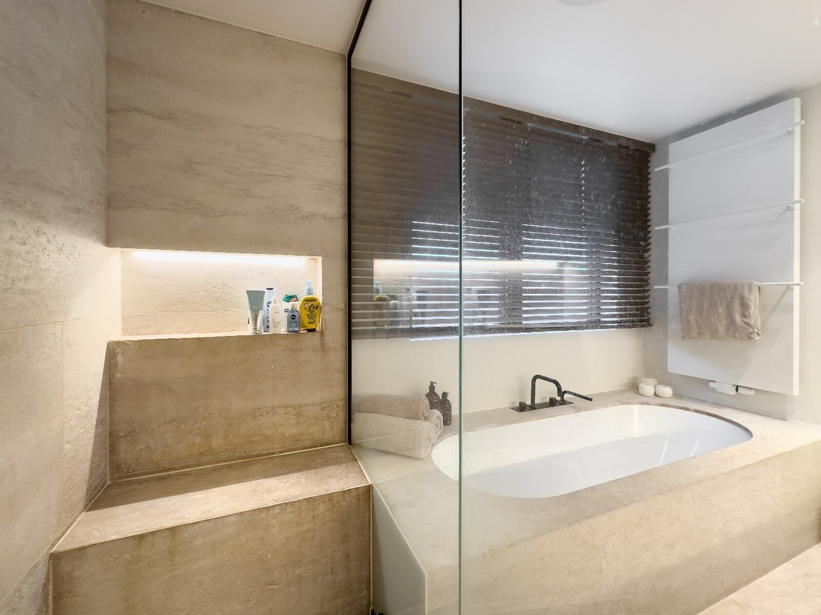 De woning werd afgewerkt met hoogwaardige materialen en beschikt over talrijke ingemaakte kasten, wat bijdraagt aan het luxueuze en praktische karakter.