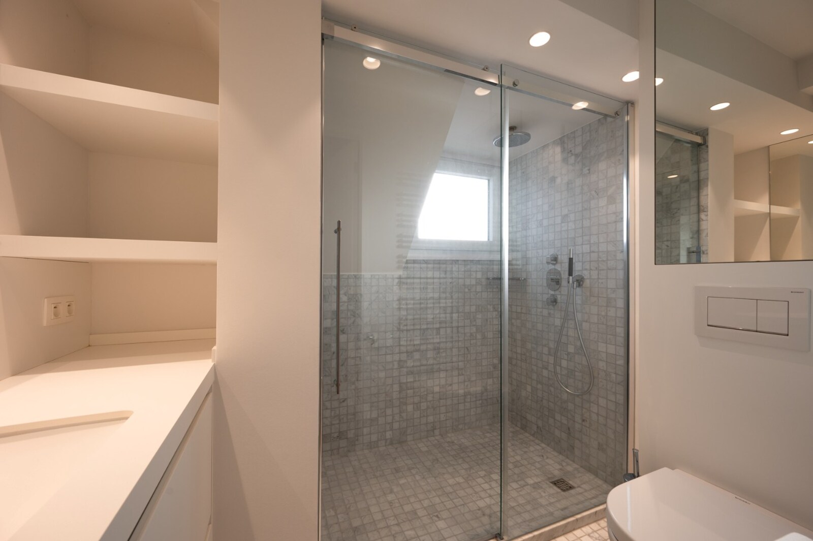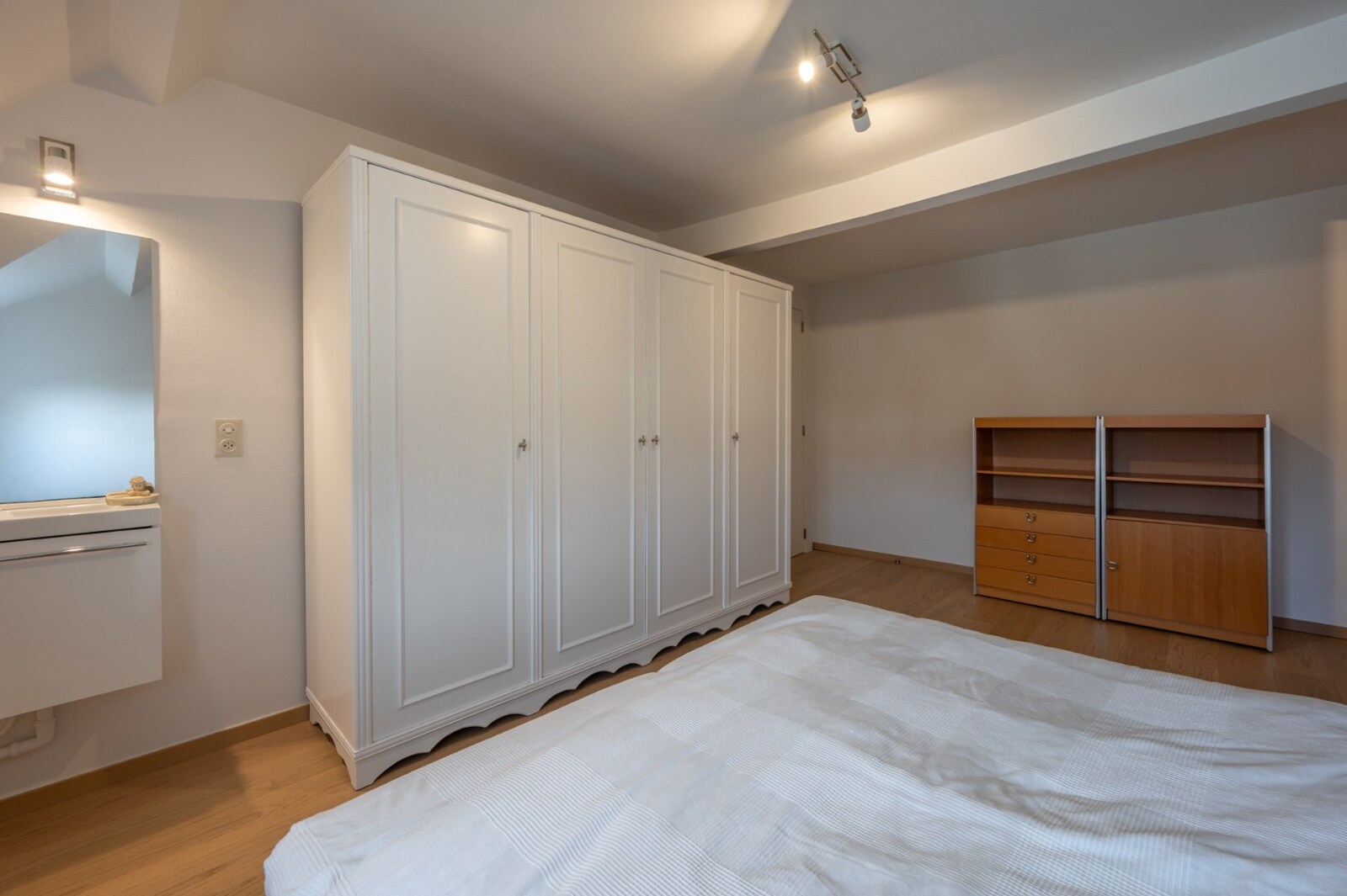 De eerste verdieping omvat twee ruime slaapkamers. Eén daarvan is momenteel ingericht als extra leefruimte en geeft uit op een aangenaam, zonnig terras. Verder is er een grote dressing, die ook perfect kan dienen als derde, compactere slaapkamer, en een comfortabele badkamer.